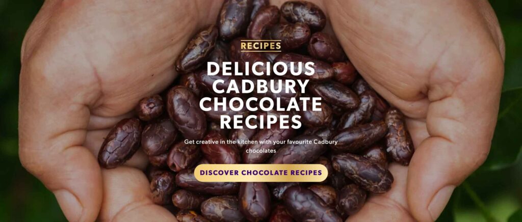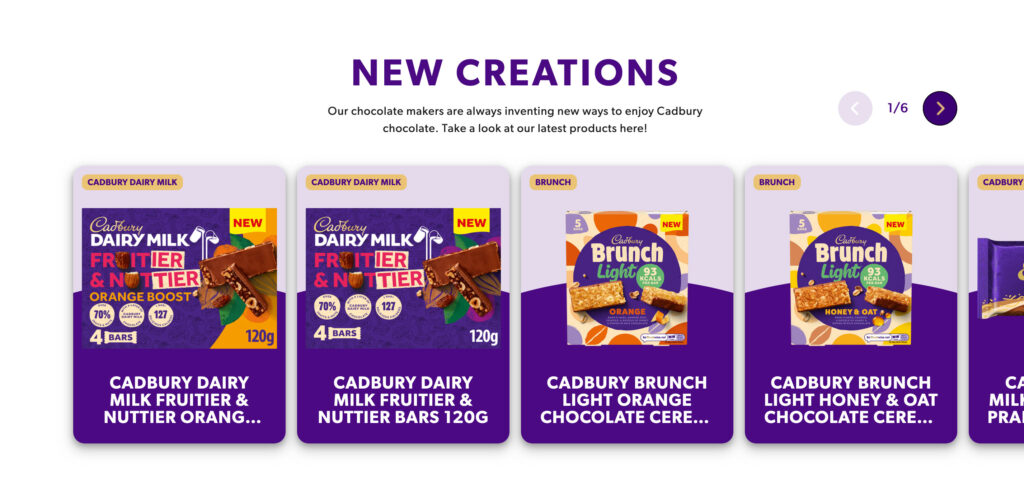 Deep Purple as background colours. Not only is it their main brand colour – which is easily recognisable, but it also aids the idea of indulgence & richness of their chocolate