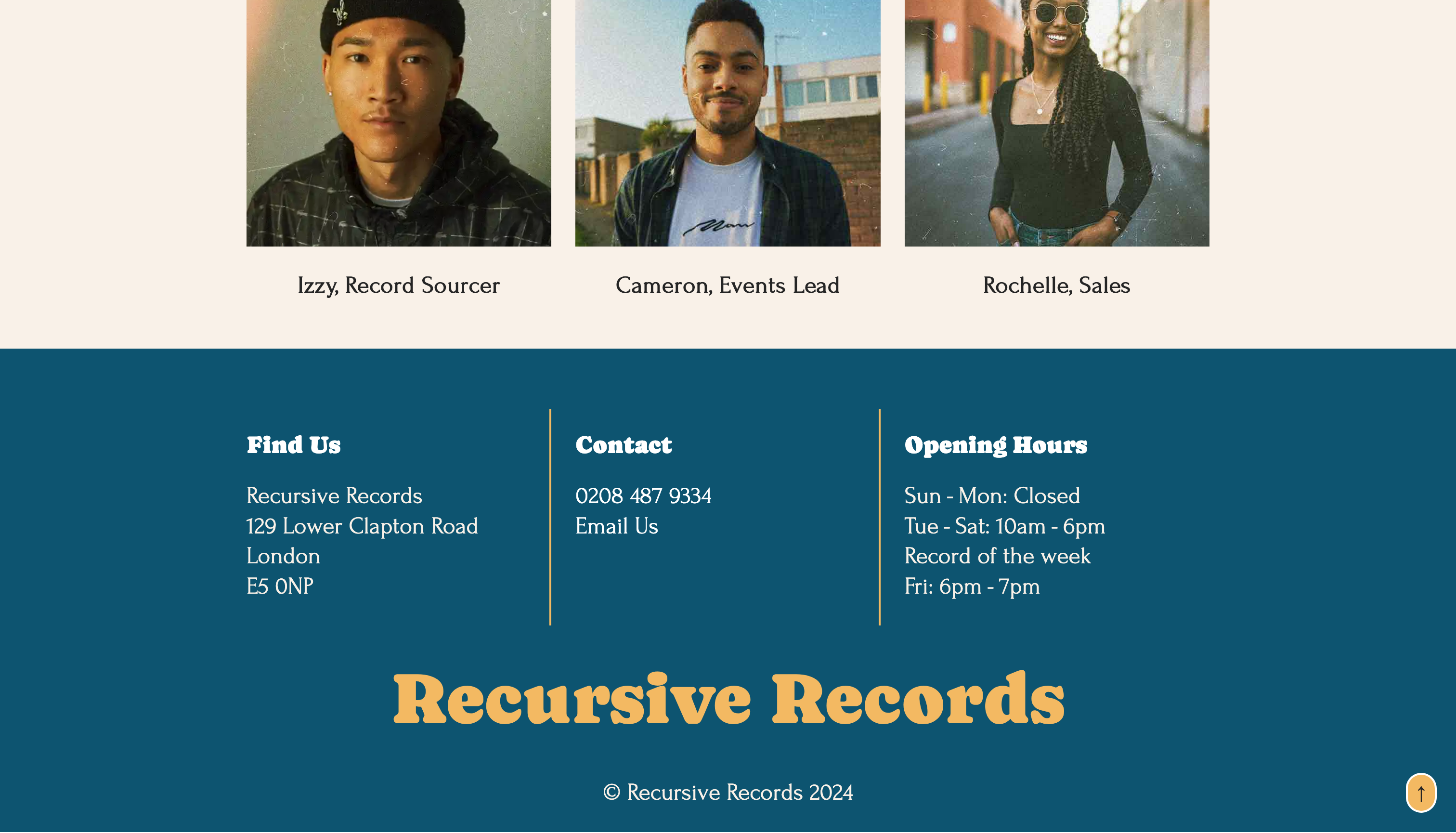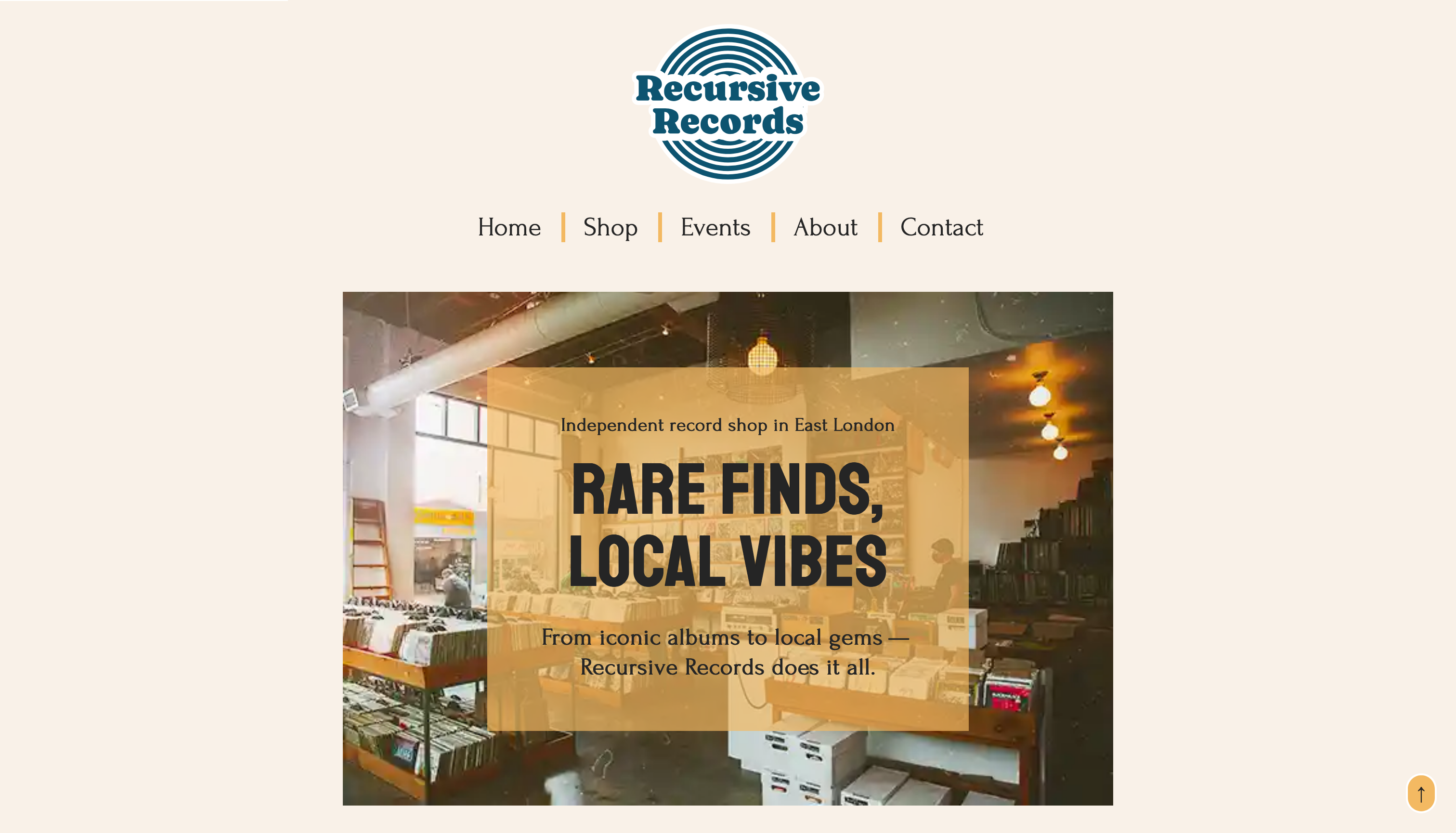 Recursive Records is a small, independent brick-and-mortar record store. This project was developed as part of my Master's degree, with the aim of creating their first website and establishing an initial digital presence. The focus was on translating the in-store experience into a simple, accessible online format — allowing customers to explore the store, its identity, and what they have to offer.